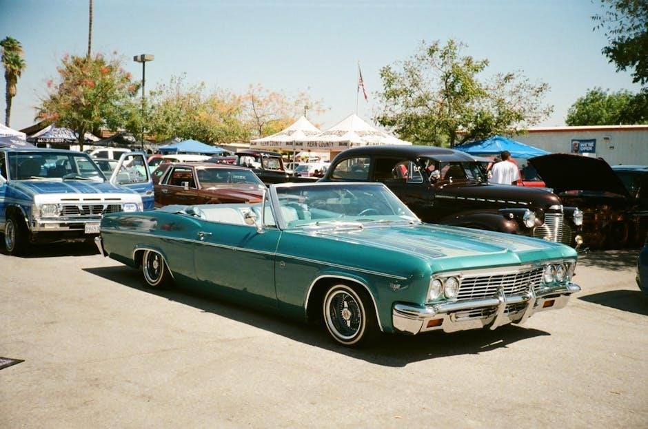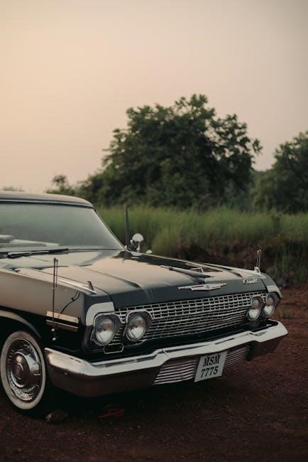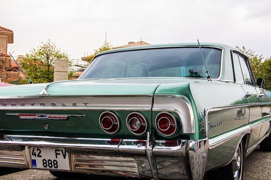 08 chevy impala owners manual ofelia December 9, 2025 2008 Chevy Impala Owners Manual: A Comprehensive Guide This guide provides essential information for 2008 Impala owners, including safety features, maintenance schedules, and troubleshooting tips, readily available as a PDF download․ General Motors trademarks are protected within this manual, offering repair information via Operation CHARM, and archived manuals from 2000-2020․ Welcome to the world of the 2008 Chevrolet Impala! This vehicle represents a blend of classic American styling and modern engineering, designed for both comfort and reliability․ As a proud owner, understanding your Impala is key to maximizing your driving experience․ This comprehensive guide serves as your primary resource, offering detailed insights into every aspect of your vehicle․ From its core features and operational procedures to essential maintenance schedules and safety protocols, we’ve compiled everything you need․ Important Note: Accessing the official 2008 Impala owners manual in PDF format is crucial for detailed specifications and warranty information․ Remember, General Motors trademarks are protected as outlined within the manual itself․ Understanding Your Vehicle’s Documentation Your 2008 Chevy Impala comes with vital documentation beyond this guide․ The official Owner’s Manual, available as a PDF download, is your primary reference for detailed specifications, warranty details, and operating procedures․ It’s crucial to familiarize yourself with its contents․ General Motors provides comprehensive information regarding trademarks and legal notices within these documents․ Additionally, archived manuals from 2000-2020 are available, offering historical context and potential insights․ Resources like Operation CHARM provide repair manuals for various models․ Understanding these resources empowers you to maintain your Impala effectively and address any potential issues proactively․ Locating the Official 2008 Impala Owners Manual (PDF Download) Finding your 2008 Chevy Impala’s official Owner’s Manual in PDF format is straightforward․ While General Motors no longer actively hosts these directly, numerous online archives preserve them․ Searching for “2008 Chevrolet Impala Owner Manual PDF” will yield several results․ Be cautious when downloading from unofficial sources; ensure the file is legitimate and free of malware․ Archived resources, compiling manuals from 2000-2020, often contain the desired document․ Operation CHARM, while focused on repair, may link to relevant documentation․ Accessing this manual provides crucial information for vehicle operation and maintenance․ Vehicle Features and Controls Explore the 2008 Impala’s interior and exterior features, understanding dashboard symbols and indicators for optimal operation, as detailed in the owner’s manual․ Interior Features Overview The 2008 Chevy Impala’s cabin offers a comfortable and functional space for drivers and passengers․ Key interior features include a spacious seating arrangement, designed for long journeys, and user-friendly controls for climate, audio, and lighting systems․ The dashboard layout prioritizes accessibility, ensuring easy operation while driving․ Owners can find detailed explanations of each feature within the official owner’s manual, including instructions for adjusting seats, operating the infotainment system, and utilizing storage compartments․ Understanding these features enhances the overall driving experience and allows owners to fully appreciate the Impala’s interior design and functionality․ The manual provides a comprehensive guide to maximizing comfort and convenience within the vehicle․ Exterior Features Overview The 2008 Chevy Impala boasts a classic and refined exterior design, characterized by its sleek lines and bold front fascia․ Key exterior features include well-integrated headlights, a prominent grille, and stylish alloy wheels, contributing to its overall aesthetic appeal․ The vehicle’s body structure is designed for both durability and aerodynamic efficiency․ The owner’s manual provides detailed information regarding exterior component operation, such as headlight adjustment, windshield wiper usage, and proper mirror positioning․ Understanding these features ensures optimal visibility and safe operation in various driving conditions․ Owners can also find guidance on maintaining the vehicle’s exterior finish, preserving its appearance for years to come․ Dashboard Symbols and Indicators The 2008 Chevy Impala’s instrument panel features a comprehensive array of symbols and indicators designed to keep the driver informed about the vehicle’s status․ Understanding these visual cues is crucial for safe and efficient operation․ The owner’s manual provides a detailed explanation of each symbol, categorizing them by severity – warning lights, indicator lights, and informational messages․ Critical warning lights, such as those for engine malfunction, low oil pressure, and brake system issues, demand immediate attention․ Indicator lights signal the activation of systems like turn signals and high beams․ The manual clarifies the meaning of each, enabling drivers to respond appropriately to any situation․ Operation and Maintenance Regular maintenance, detailed in the owner’s manual, ensures optimal performance and longevity for your 2008 Impala, covering starting, driving, and upkeep․ Starting and Stopping the Engine To start your 2008 Chevy Impala, ensure the parking brake is engaged and the transmission is in Park or Neutral․ Insert the key into the ignition and turn it to the ‘Start’ position, releasing once the engine ignites․ Avoid prolonged cranking․ For stopping the engine, gently apply the brakes to bring the vehicle to a complete halt․ Shift the transmission into Park and firmly set the parking brake․ Turn the ignition k